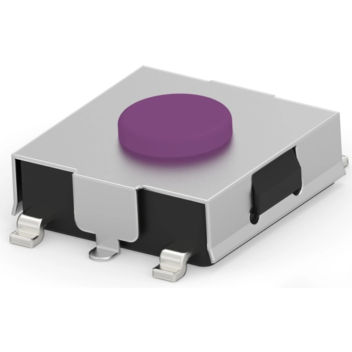 Kurzhubtaster, Schließer, 50 mA/24 VDC, unbeleuchtet, Betätiger (violett, L 0.5 mm), 2,54 N, Gull-wing, 1-1571636-0