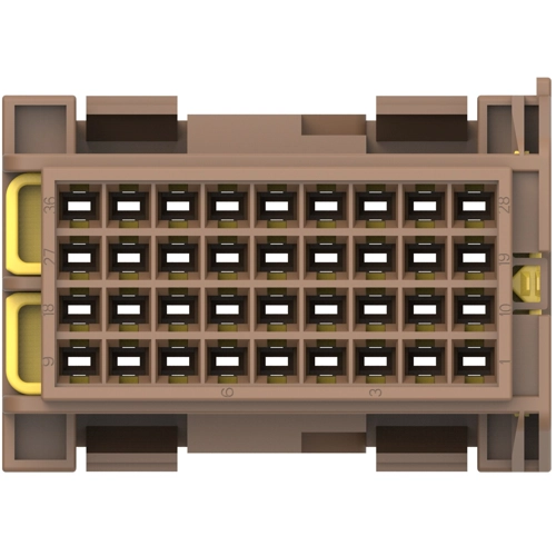 Reihenabstand: 5,5 mm, 6,3 mm, Steckverbinder-und gehäusetyp: Steckergehäuse, Steckverbindersystem: draht-an-draht, draht-an-leiterplatte, kabel-an-gerät, Abdichtbar: nein, Hybrid steckverbinder: nein, Anzahl von-poligen: 36, Zeilenanzahl: 4, Nominalspannungs-architektur: 12 V, 24 V, Arbeitsspannung: 36 VDC, Kabelausgangswinkel: 180°, Gehäusematerial: PBT GF, Primäre produktfarbe: braun, Flachkontaktbreite: 1,5 mm, Montageelement: ohne, Polarisiert: ja, Raster: 4 mm, Höhe: 32,05 mm, Länge: 44,5 mm, Breite: 41,1 mm, Betriebstemperatur (max): 70 °C, 75 °C, 80 °C, 85 °C, 90 °C, 100 °C, 105 °C, 110 °C, 120 °C, Betriebstemperaturbereich:-40-120 °C, Stromkreis anwendung: signal, UL-brandschutzklasse: UL 94-HB, Verpackungsmethode: kasten, Verpackungsmenge: 330, Wartbar: ja, Steckverbinder-poligssicherung: nein