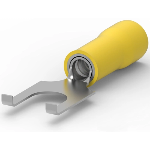 Beschreibung der Form: SPADE-024, Ring und Gabel – Bolzengröße: #4,M2.5, Ring und Gabel – Hülsentyp: Geschlossene Hülse, Abdichtbar: Nein, Insulated: Yes, Klemmenwinkel: Gerade, Spannung (max.): 300 V, Farbe der Isolierhülse: Gelb, Ring und Gabel – Beschichtungsmaterial: Kupfer,Zinn, Klemmen- und Spleißart: Gabel-Flanschzunge, Ring und Gabel – Klemmenausrichtung: Angeflanscht,Gerade, Drahtisolationsunterstützung: Mit, Wire Size: 26 – 22 AWG, Wire Size: .12 – .4 mm², Drahtgröße: 202 – 810 CMA, Bolzendurchmesser: 2.84 mm, Zungendicke: .5 mm, Isolationsanforderung: Teilweise isoliert, Betriebstemperaturbereich: 105 °C, Starke Beanspruchung: Nein, Mit behördlicher Genehmigung: Nein, Verpackungsmenge: 1000, Ring und Gabel – Verpackungsmethode: Einzelausführung