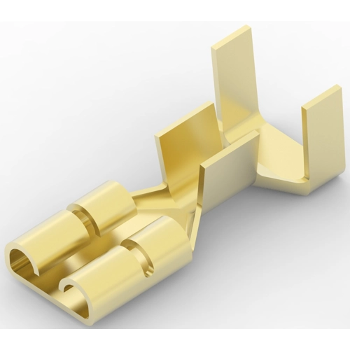 Anschluss an: Leitungen und Kabel, Einsetzkraft: Niedrig, Abdichtbar: Nein, Insulated: No, Verbindungskapazität: Einfach, Vollständig isoliert: Nein, Beschichtungsmaterial: Unplattiert, Lötverfahren: Buchse, Klemmen- und Spleißart: Receptacle, Klemmenausrichtung: Gerade, Kontaktmaterial: Messing, Crimptyp: F-Crimp, Drahtisolationsunterstützung: Mit, Buchsenkontakt-Aufmaßdicke: 0.46 mm, Wire Size: 14 - 10 AWG, Wire Size: 2.08 - 5.26 mm², Flachkontaktbreite: 6.35 mm, Flachkontaktdicke: 0.81 mm, Betriebstemperaturbereich: -40 - 110 °C, UL-Grad: Gelistet, Verpackungsmenge: 6000, Verpackungsmethode: Streifen/Rolle, Kommentar: Spannungsfrei