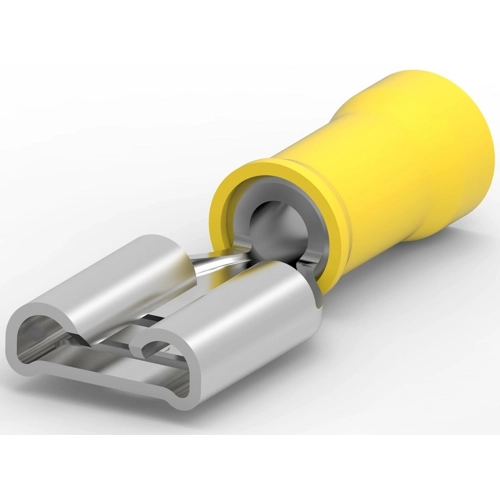 Anschluss an: Leitungen und Kabel, Einsetzkraft: Normal, Abdichtbar: Nein, Insulated: Yes, Spannung (max.): 300 V, Isoliermaterial: Nylon, Vollständig isoliert: Nein, Beschichtungsmaterial: Zinn, Lötverfahren: Buchse, Klemmen- und Spleißart: Receptacle, Klemmenausrichtung: Gerade, Kontaktmaterial: Messing, Crimptyp: Kompression, Drahtisolationsunterstützung: Mit, Buchsenkontakt-Aufmaßdicke: 0.46 mm, Wire Size: 12 - 10 AWG, Wire Size: 2.62 - 6.64 mm², Drahtgröße: 5180 - 13100 CMA, Flachkontaktbreite: 6.35 mm, Betriebstemperaturbereich: 105 °C, RU (UL-Komponentenprogramm): Freigegeben, Verpackungsmenge: 500, Verpackungsmethode: Loses Teil, Zylinderfarbe: Gelb