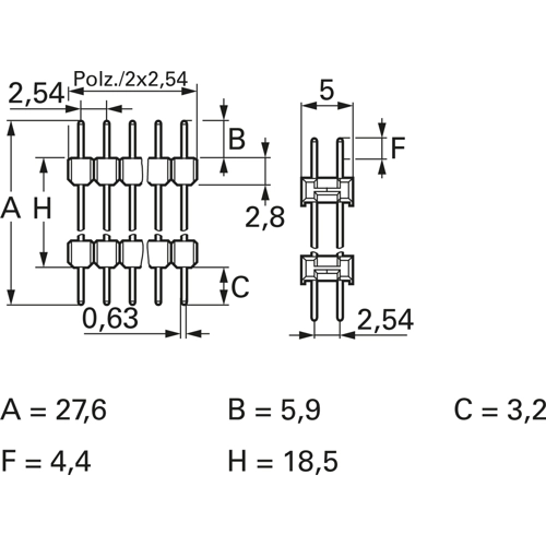 Technische Merkmale (Typ, Polzahl): 2-0829587-0, 2 x 20polig, A 27,6 mm