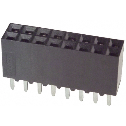 Buchse für die Leiterplattenmontage, Vertikal, Leiterplatte-an-Leiterplatte, 16 Positionen, 2.54 mm Mittellinie, Gold (Au), Durchsteckmontage - Löten, Modu-Verbindungssystem.