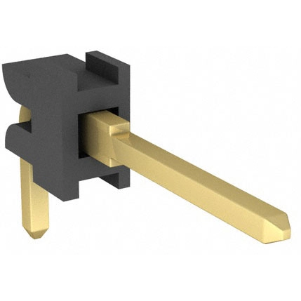Stiftleiste für die Leiterplattenmontage, Rechter Winkel, Leiterplatte-an-Leiterplatte, 1 Positionen, 2,54 mm Mittellinie, Ohne Umhüllung, Gold (Au), Durchsteckmontage - Löten.