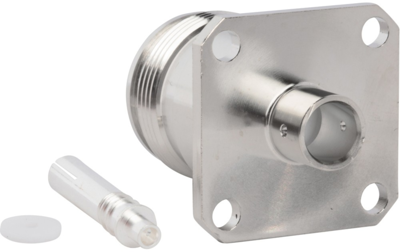 RF-Steckverbinder, 4.3-10 gerade Buchse für .250" Semi-Rigid, Low PIM, 4-Loch-Flansch, 50 Ω