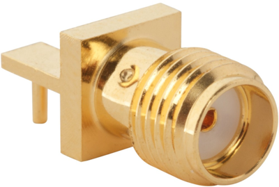 RF-Steckverbinder, SMA Ende Einführung Leiterplattenbuchse, Through Hole, 0.010" Pin, quadratischer Flansch, 0.118" Beine, Hochfrequenz, 50 Ω