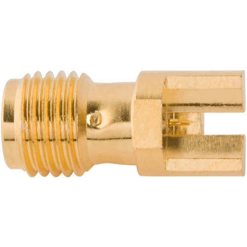 RF-Steckverbinder, SMA Ende Einführung Leiterplattenbuchse, Slide-On, 0.015" Pin, runder Flansch W/Flats, 0.062" PCB, abgeschrägter Fuß, Hochfrequenz, 50 Ω