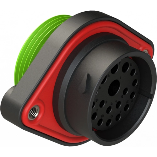 18 Positionen, Abgedichtete Einbau-Steckdose, Buchse, Gehäusegröße 24, Umgekehrte Anordnung, Normaler Durchmesser Dichtung, Glatter Ringadapter.