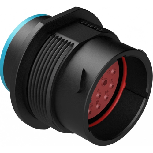 20 Positionen Buchse, Stift, Gehäusegröße 18, Reduzierte Durchmesserdichtung (blau), Glatter Ringadapter.
