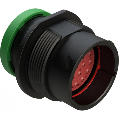 21 Positionen, Buchse, Stift, Gehäusegröße 18, Standard-Anordnung, Normaldurchmesser-Dichtung, Rückwandring-Adapter (aufsteckbar).