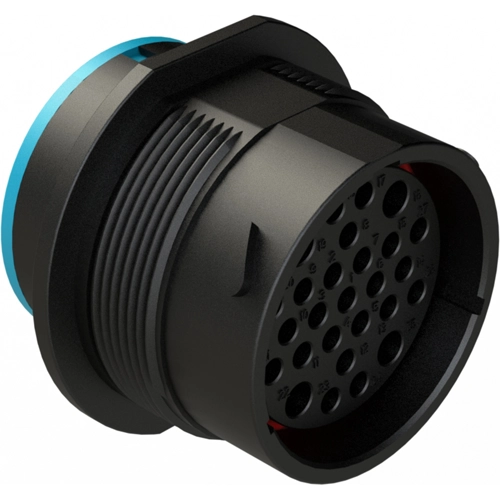 27 Positionen Steckdose, Buchse, Gehäusegröße 24, Reduzierte Durchmesserdichtung (Blau), Glatter Ringadapter, Staubkappe inklusive.