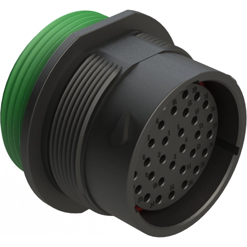 33 Positionen Steckdose, Gehäusegröße 24, Buchse, Kunststoff, Hintere Dichtung mit normalem Durchmesser, Weitgewinde-Adapter WTA (Grün).