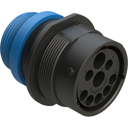 9 Positionen Buchse, Stift, Isobus, Gehäusegröße 24, Reduzierte Durchmesserdichtung (blau), Kleiner Gewindeadapter.