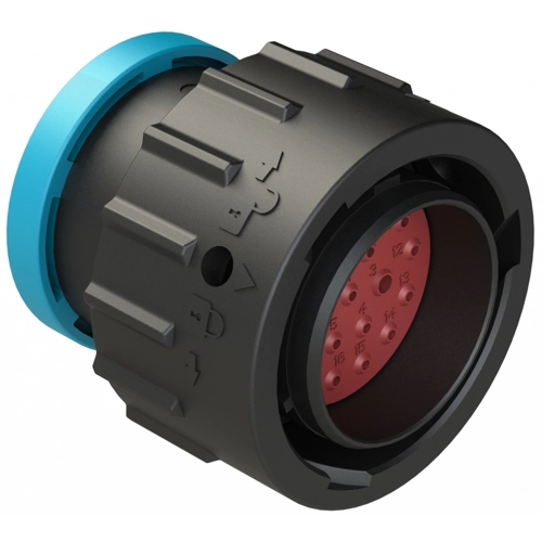 20-poliger, Stecker, Stift, Gehäuse Größe 18, umgekehrte Anordnung, Dichtung mit reduziertem Durchmesser, Rückschalen-Ringadapter (Snap-On).