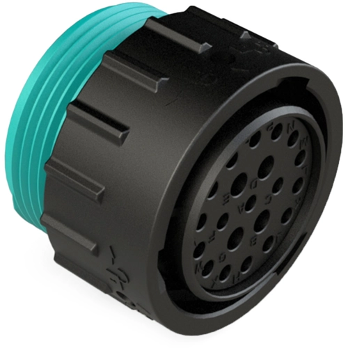 21-poliger Stecker, Buchse, Gehäusegröße 24, Dichtung mit reduziertem Durchmesser (Blau), Adapter mit breitem Gewinde.