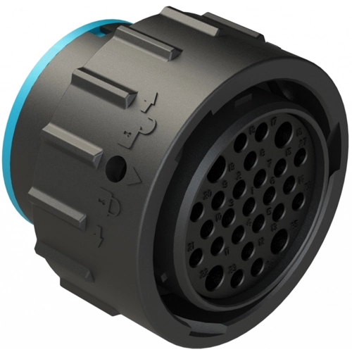 27 Positionen, Stecker, Buchse, Gehäusegröße 24, Reduzierte Durchmesserdichtung (Blau), Glatter Ringadapter.