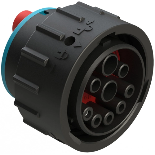 9 Positionen Isobus Stecker, Buchse, Gehäusegröße 24, Reduzierte Durchmesserdichtung (Blau), Glatter Ringadapter, Hinweis: verwenden (Größe 8) PN, # AT62-203-08141-16 Kontakte für 6 AWG/16 mm² Anwendungen.