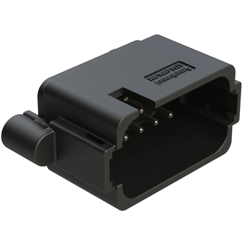 18-polige Stiftleiste, ohne Flansch, selbstschneidend, B-Kodiert, vernickelt, vergossen, schwarz.