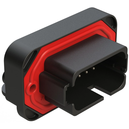 18 Positionen, Rechter Winkel, Flanschbefestigung, PCB-Buchse, Verzinnte Kontakte enthalten, Mit Schlüssel B, Schwarz.