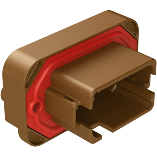 12 Positionen, Flanschbefestigung, PCB-Buchse, Braun, Verzinnte Kontakte enthalten, Mit Schlüssel D, Vergleichbar mit pn.