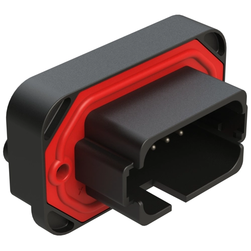 18 Positionen, Flanschbefestigung, PCB-Buchse, Verzinnte Kontakte enthalten, Mit Schlüssel D, Schwarz.
