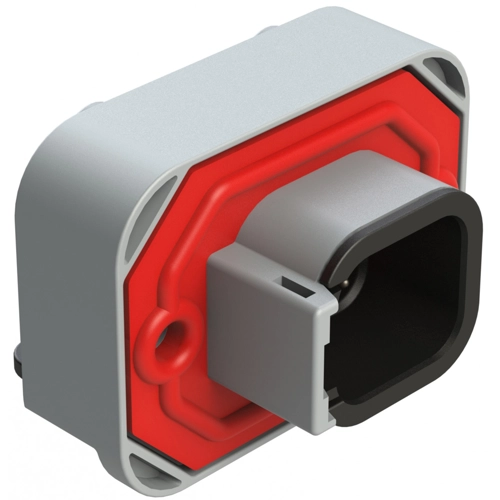 6 Positionen, Rechter Winkel, Flanschbefestigung, PCB-Buchse, Topf, Grau, Verzinnte Kontakte enthalten.