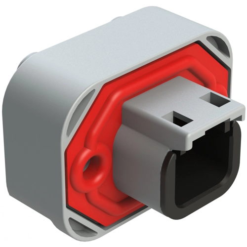 2 Positionen, Flanschbefestigung, PCB-Buchse, Grau, Verzinnte Kontakte enthalten.