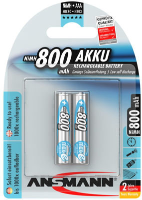 - Diese wiederaufladbare AAA / HR03 NiMH-Batterie hat eine Nennkapazität von 800 mAh