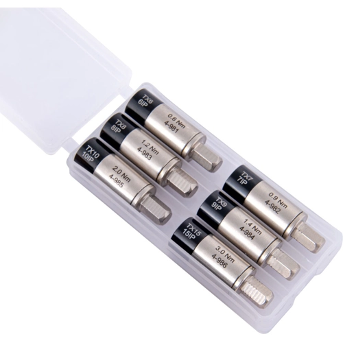 Drehmomentadapter-Satz 0,6 - 3,0 Nm für 1/4" (6,35 mm) Bits. 6 Drehmomentadapter Ø 12 mm.