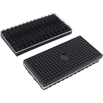 Die 50 mm Schonbacken bestehen aus einem geriffelten Kunststoffbelag mit Druckverschluss und sind zum Ankletten für Kugelgelenk-Schraubstock 9-205-K. Die geriffelte Fläche sorgt für starken Halt und gute Fixierung der zu bearbeitenden Teilen und Komponenten. Der Druckverschluss ist eine Art Klettband mit sehr stabiler und punktgenauer Fixierung. Durch einfaches Zusammendrücken - wobei kleine Pilzköpfe ineinandergreifen - entsteht eine sehr feste, aber wieder ablösbare Verbindung. Der Druckverschluss kann gekreuzt, versetzt oder überlappt verklickt werden.