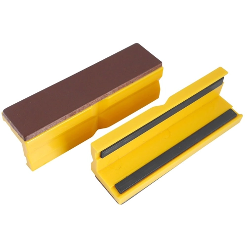 Die Schonbacken aus Kunststoff sitzen, aufgrund ihrer doppelten Magnetleiste, perfekt an jedem Schraubstock mit Stahlbacken. Der hochwertige Lederbelag schützt empfindliche Teile vor Kratzern oder Beschädigungen. Durch die Längs- und Querrille können auch runde Gegenstände sicher eingespannt werden.
