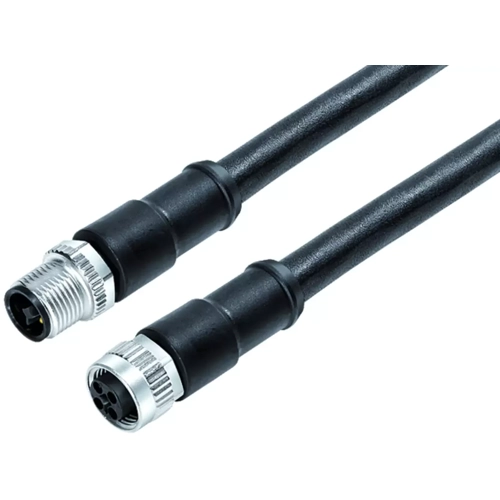 M12-T Verbindungsleitung, Polzahl: 4, ungeschirmt, am Kabel angespritzt, IP68, PUR, schwarz, 4 x 1,50 mm², 5 m.