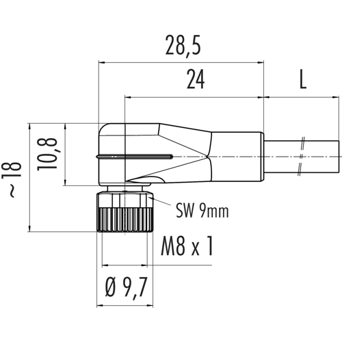 | Anschluss (1) | M8-Kabeldose, abgewinkelt | |