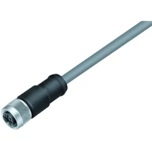 M12-A Kabeldose, Polzahl: 3, geschirmt, am Kabel angespritzt, IP67, UL, PVC, grau, 3 x 0,34 mm², 5 m.