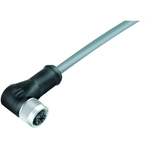 M12-A Winkeldose, Polzahl: 8, geschirmt, am Kabel angespritzt, IP67, UL, PVC, grau, 8 x 0,25 mm², 5 m.