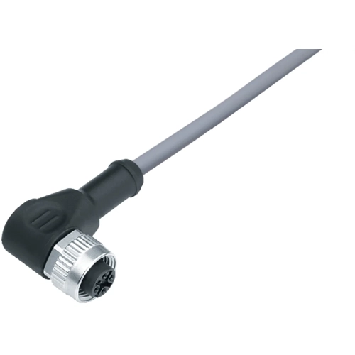 M12-B Winkeldose, Polzahl: 5, ungeschirmt, am Kabel angespritzt, IP68, UL, PVC, grau, 5 x 0,34 mm², 5 m.
