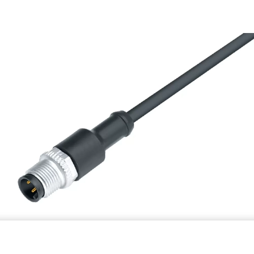M12-A Kabelstecker, Pol 3, ungeschirmt, kabelangespritzt, IP69K, PUR schwarz, 3 x 0,34 mm², 5 m