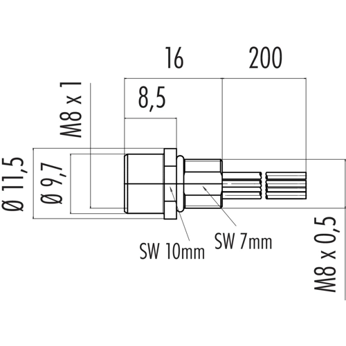 Einbaubuchse, M8, 8-polig, Litzenanschluss, Schraubverriegelung, gerade, 76 6018 0111 00008-0200