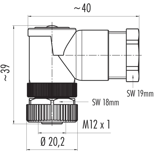 M12-A Winkeldose, Polzahl: 5, 8,0-10,0 mm, ungeschirmt, schraubklemm, IP67, UL, VDE, für die Spannungsversorgung (Power).