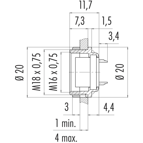 M16 IP40 Flanschdose, Polzahl: 16, ungeschirmt, löten, IP40, von vorn verschraubbar.