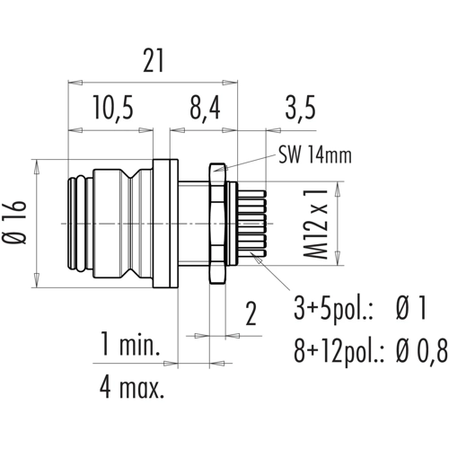 Snap-In IP67 (Miniatur) Flanschdose, Polzahl: 5, ungeschirmt, THT, IP67.