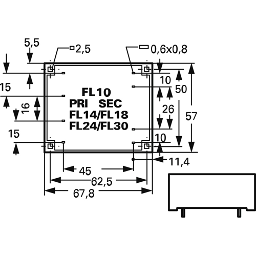 Print-Flachtransformator, 14 VA, 9 V/9 V, 777 mA/777 mA, 74 %, FL 14/9