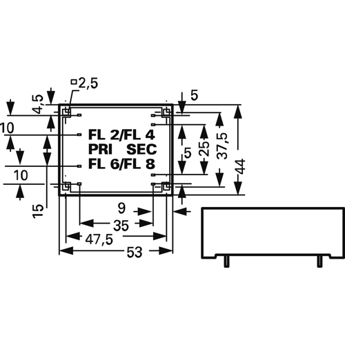 Print-Flachtransformator, 8 VA, 9 V/9 V, 444 mA/444 mA, 76 %, FL 8/9