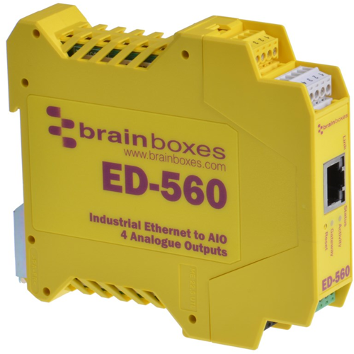 Der ED-560 ermöglicht die Auflösung von Vollskalensignalen bis zu ±75mV mit einer Genauigkeit von 12 Bit über 4 Analogausgänge. Jeder Kanal ist individuell konfigurierbar für Spannungs- oder Stromausgang mit eigener programmierbarer Verstärkung. Das Gerät wird als COM-Port auf einem Windows-PC installiert, um eine vollständige Rückwärtskompatibilität zu gewährleisten, die für ältere Anwendungen unerlässlich ist. Von anderen Plattformen und Betriebssystemen aus kann das Gerät über TCP/IP gesteuert werden. Zusätzlich stellt Brainboxes eine Reihe von APIs und Beispielcode zur Verfügung, um mit dem ED-Gerät unter Verwendung von Microsoft .NET Framework, C++, Java, Javascript, PHP und anderen zu kommunizieren. Das Gerät kann über einen Webbrowser konfiguriert und gesichert werden. Die ED-Produktreihe ist für raue Umgebungen ausgelegt.