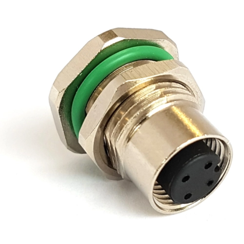 Einbaubuchse, M12, 4-polig, Lötstifte, Schraubverriegelung, gerade, PXMBNI12RPF04DPCPG9