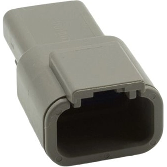 Der 3 -polige rechteckige Miniaturstecker (Buchse) in Grau wird mit einer Schutzkappe (PEC) geliefert und entspricht im gesteckten Zustand der Schutzart IP68.