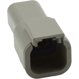 Der 4 -polige rechteckige Miniaturstecker (Buchse) in Grau wird mit einer Schutzkappe (PEC) geliefert und entspricht im gesteckten Zustand der Schutzart IP68.