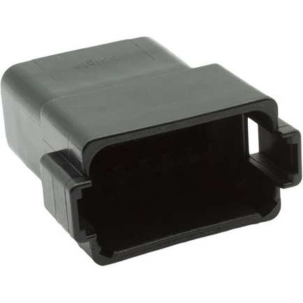 Der 12-polige Standard-Stecker (Buchse) in rechteckiger Form, schwarz, ist bei Verbindung mit einem kompatiblen Stecker gemäß IP68 wasser- und staubdicht.