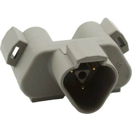 Der 3-polige Standard-Stecker (Buchse) in rechteckiger Form in Grau wird inklusive Y-Stecker (YTY) geliefert und ist bei Verbindung mit einem kompatiblen Stecker gemäß IP68 wasser- und staubdicht.