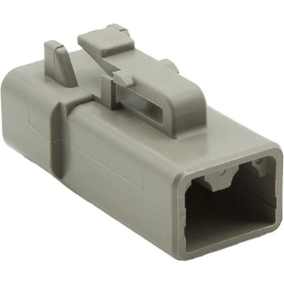 Der 2-polige rechteckige graue Stecker mit IP68-Schutzklasse im gesteckten Zustand.